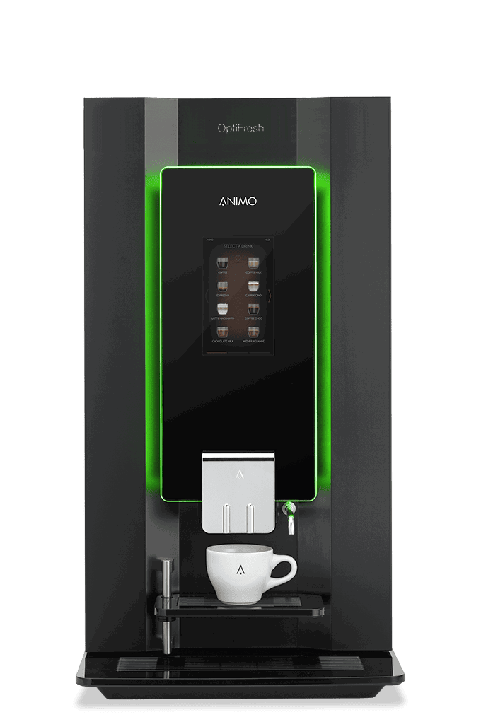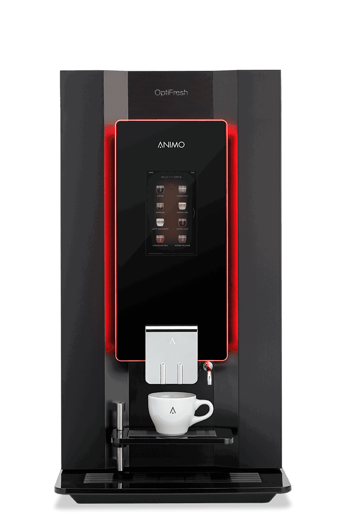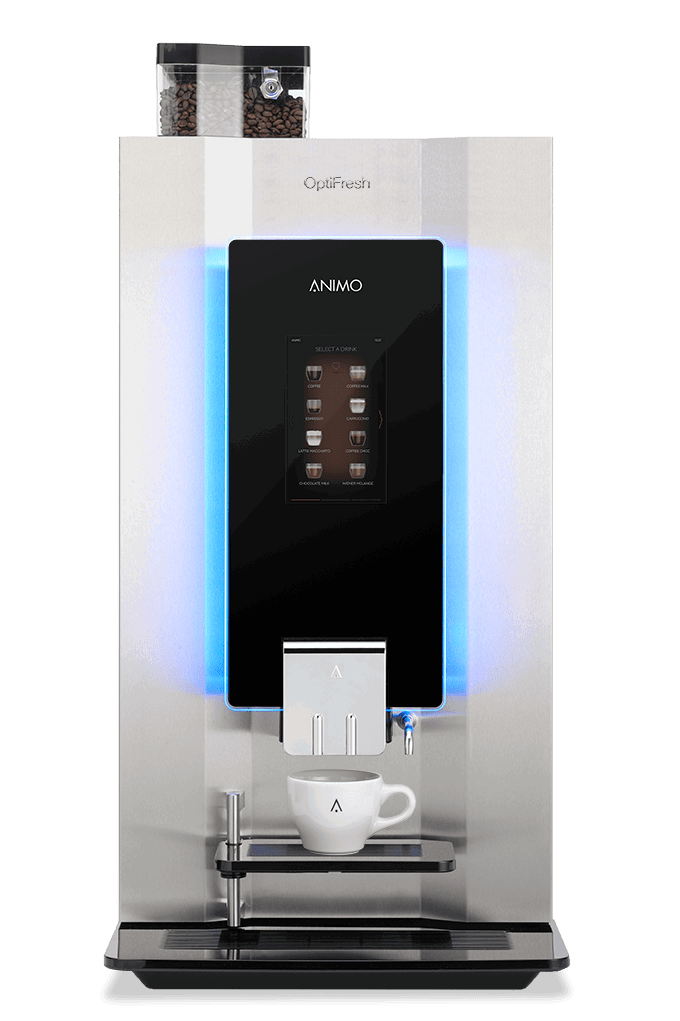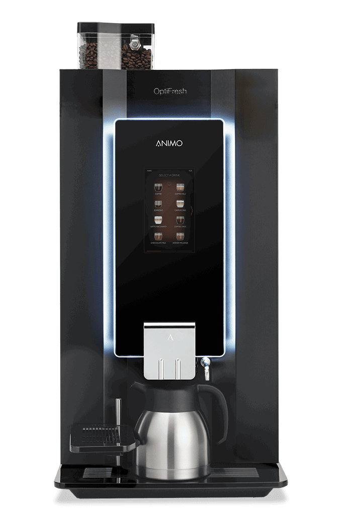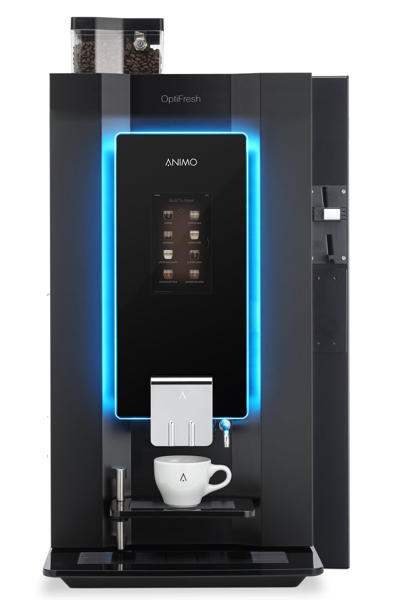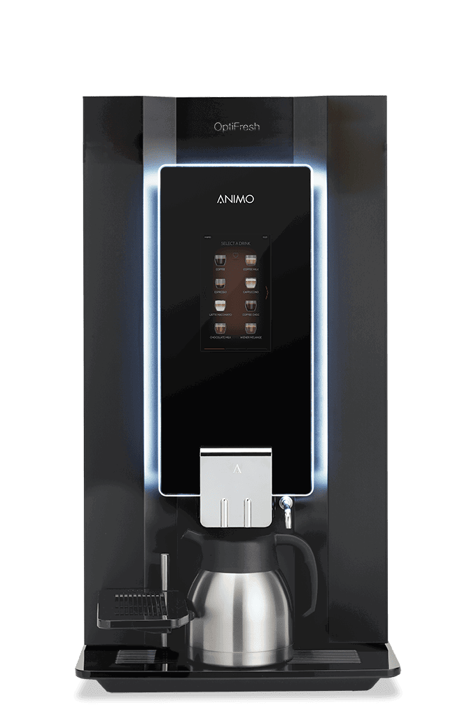 macchiato. De OptiFresh van Animo heeft het allemaal. Hij is modern maar zet authentiek lekkere koffie. En natuurlijk heet water voor thee en instantdranken zoals chocolade.