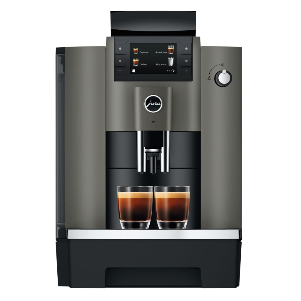 Pure-coffee volautomatische koffiemachine in een compact bedrijfsformaat Compact en met alle comfort dat u zich maar kunt wensen in een zakelijke omgeving: de W4 is een robuuste, professionele Pure-coffee volautomatische koffiemachine die zeer gebruiksvriendelijk is. De moderne technologie van de W4 omvat de Professional Aroma Grinder (P.A.G.2). Vanaf het eerste kopje zet hij met precisie en geeft hij de zwarte koffiespecialiteiten de gewenste intensiteit. De Pure-coffee-expertise wordt aangevuld door de Lungo-functie voor uitgebreide specialiteiten en het pulserende extractieproces (P.E.P.®) voor intense espresso. Het ontwerp is gebaseerd op de functionaliteit en klassieke elegantie van JURA. Met een kleurendisplay, knoppen aan de voorkant en een draaiknop voor heetwater- en stoombereiding is de W4 uiterst gebruiksvriendelijk. Onberispelijke hygiëne met één druk op de knop en vergrendelbare onderdelenzorgen voor een eenvoudig gebruik. Terwijl de heldere lijnen van de W4 zorgen voor een tijdloze esthetiek, biedt de programmering de nodige ruimte voor flexibiliteit. Poeder- en waterhoeveelheden en vergrendelingsopties zijn variabel instelbaar. Met een waterreservoir van 3 liter en een bonenreservoir met een capaciteit van 500 gram is de W4 ideaal voor plaatsen waar een dagelijkse capaciteit van maximaal 50 zwarte koffiespecialiteiten nodig is.